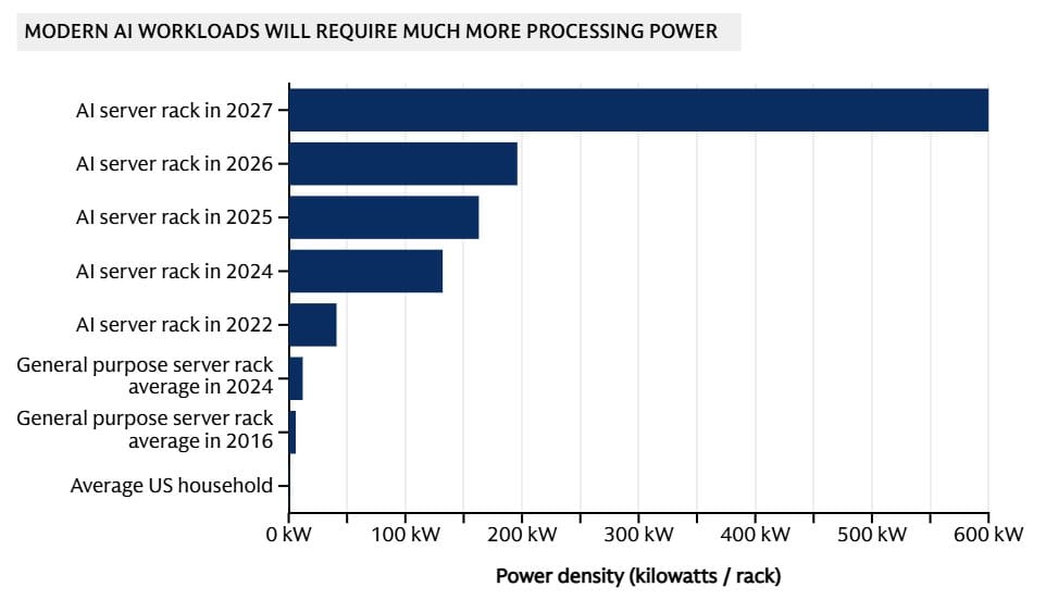 An AI server rack (data center) in 2025 consumes the same energy as roughly 125 homes in the US.