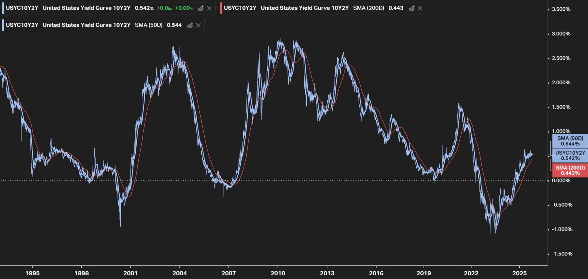 Yield Curve, 10Y - 2Y Bonds